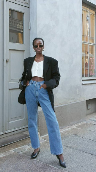 Imaginez une échelle allant du bleu-jean ( le pantalon de tout le monde) à des vêtements sur-mesure très chers. La plupart des gens choisissent un compromis confortable combinant les deux. Comme par exemple mélanger une veste blazer ( synonyme d'un vêtement autoritaire) avec un bas accessible tel un pantalon en jean.